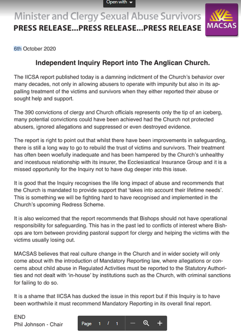 Open letter regarding IICSA to the parish of St Margaret’s Rainham: Also in a PDF here.